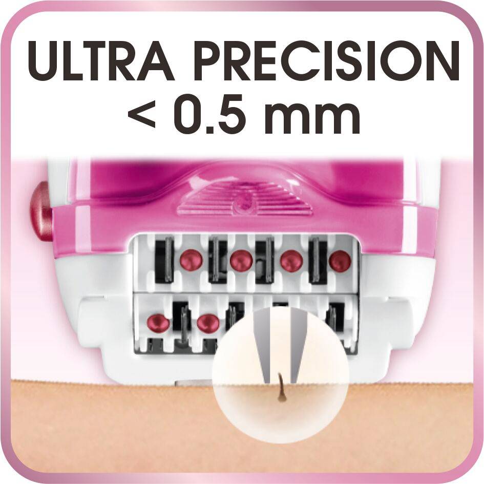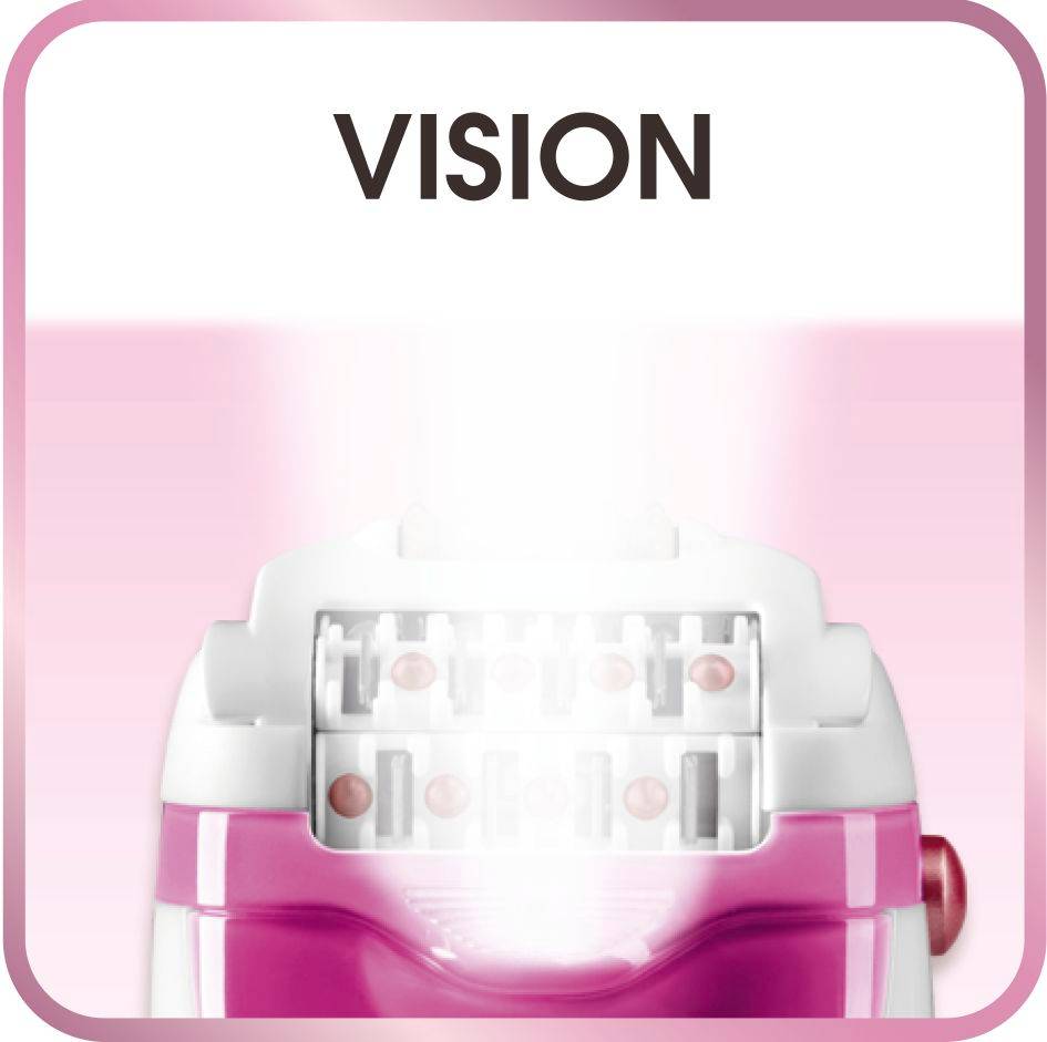 Depiladora 3 em 1 - Cabeça de arranque + Cabeça de corte + Bikini trimmer Tecnologia Silence - para uma depilação serena e discreta Tecnologia Soft Sensation - para uma depilação sem dor: combina a ação de um sistema dessensibilizante e um fluxo de ar fresco contínuo Tecnologia Micro-contact Advanced - ajusta-se perfeitamente aos contornos do corpo, e graças ao seu efeito tensor, os pelos são retirados sem repuxar a pele Função vision - luz de precisão integrada para uma depilação mais eficiente Acessórios - cabeça Bikini trimmer, cabeça esfoliante e acessórios zonas sensíveis Cabeças amovíveis e laváveis - máxima higiene 24 pinças planas - arrancam mesmo os pelos mais pequenos e finos (< 0,5 mm)