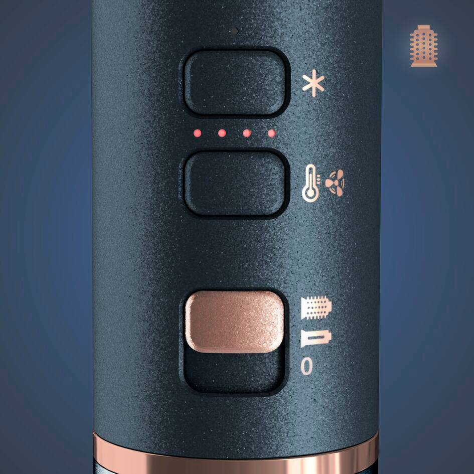 Colocando toda a experiência de um cabeleireiro ao seu alcance, a escova Air Rotate Ultimate Experience oferece um acabamento profissional em casa. 8 combinações possíveis de velocidade/temperatura facilitam a obtenção de resultados perfeitos e personalizados. O motor digital de alta velocidade oferece toda a experiência de um cabeleireiro profissional em casa, para penteados deslumbrantes dia após dia.