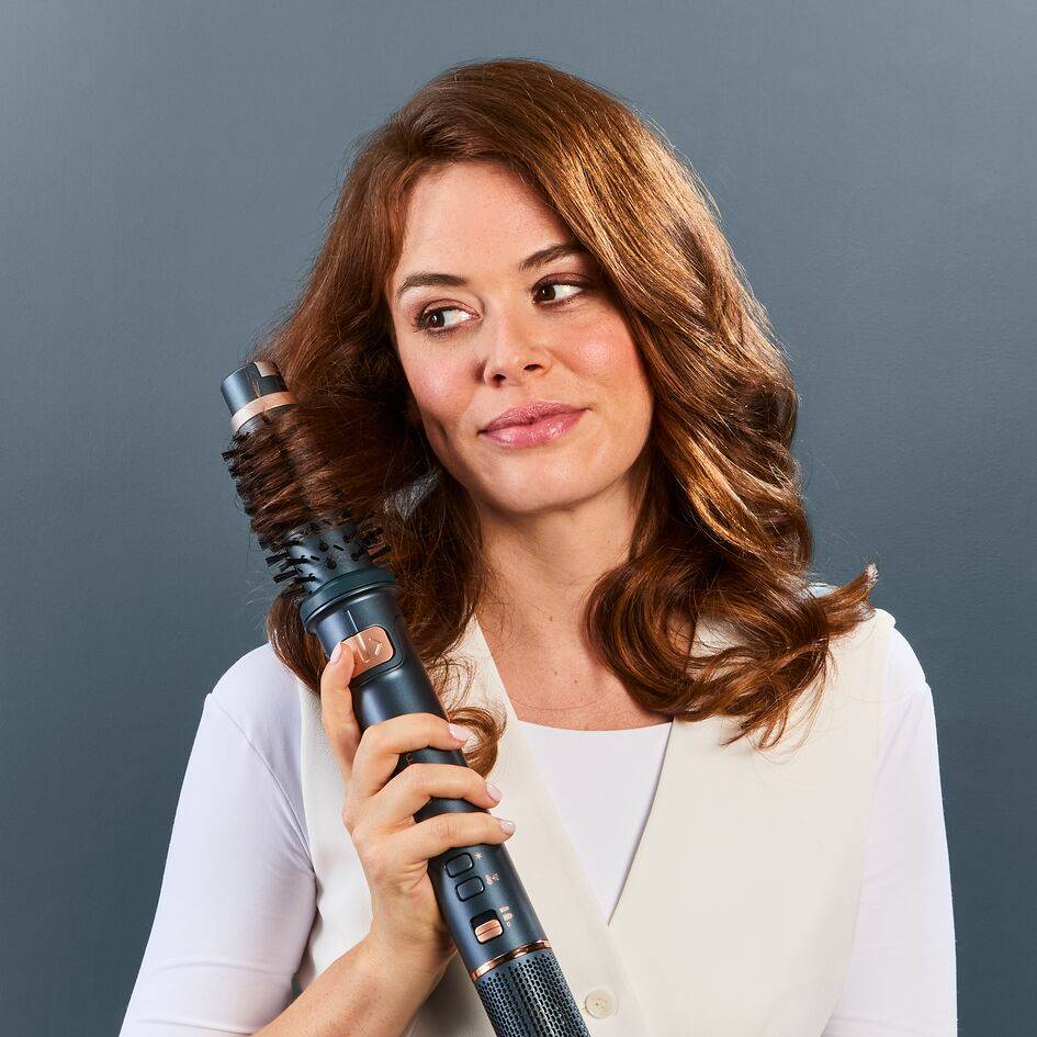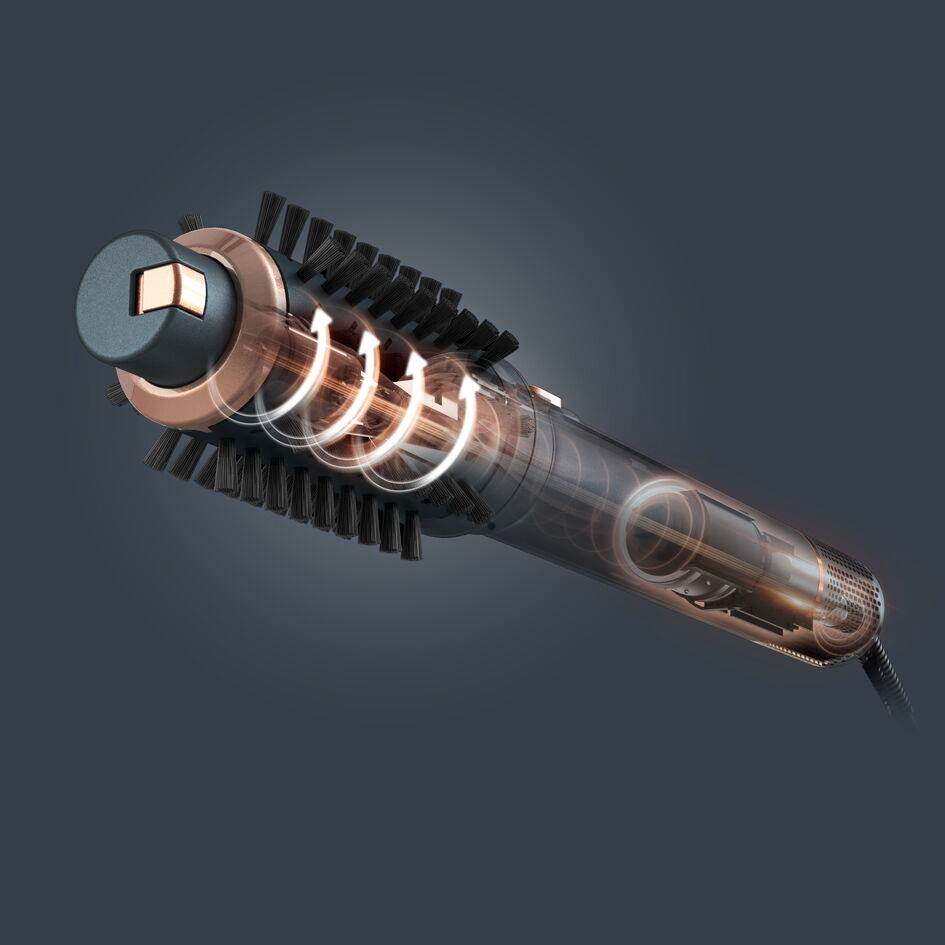 Uma escova de ar quente equipada com tecnologia inovadora de rotação a alta velocidade para um volume duradouro e um brilho deslumbrante As cerdas naturais combinam-se com a rotação rápida para um cabelo brilhante com aquela sensação de acabado de sair do cabeleireiro Resultados personalizados e volume aumentado com 8 combinações baseadas no seu tipo de cabelo e estilo desejado Velocidades de ar potentes até 160 km/hora, com um motor de alta velocidade para uma secagem rápida e eficiente Acessórios de pentear: Escova de 38 mm para uma modelação mais intensa, uma escova de 50 mm para looks suaves, e rolos para resultados duradouros Use os rolos para obter um volume deslumbrante que fica sempre perfeito — com um design exclusivo para resultados duradouros Resultados elegantes, seguros e sem frisados graças às cerdas naturais, rotação rápida, gerador iónico e revestimento em cerâmica Com uma bolsa de arrumação e acessórios, o Air Rotate é o presente perfeito