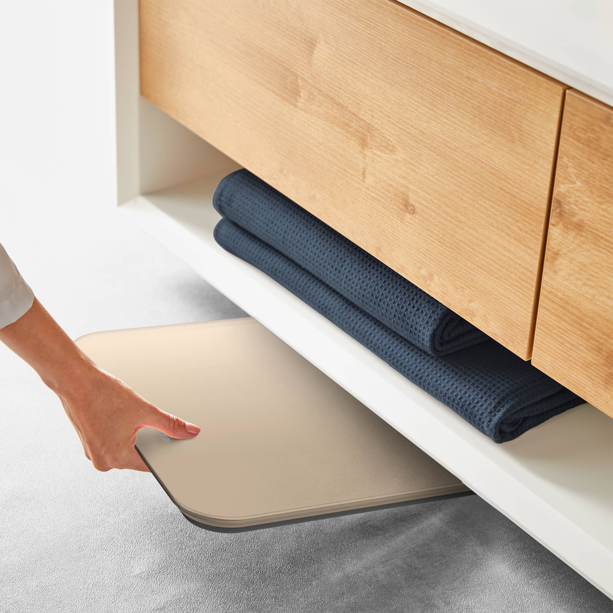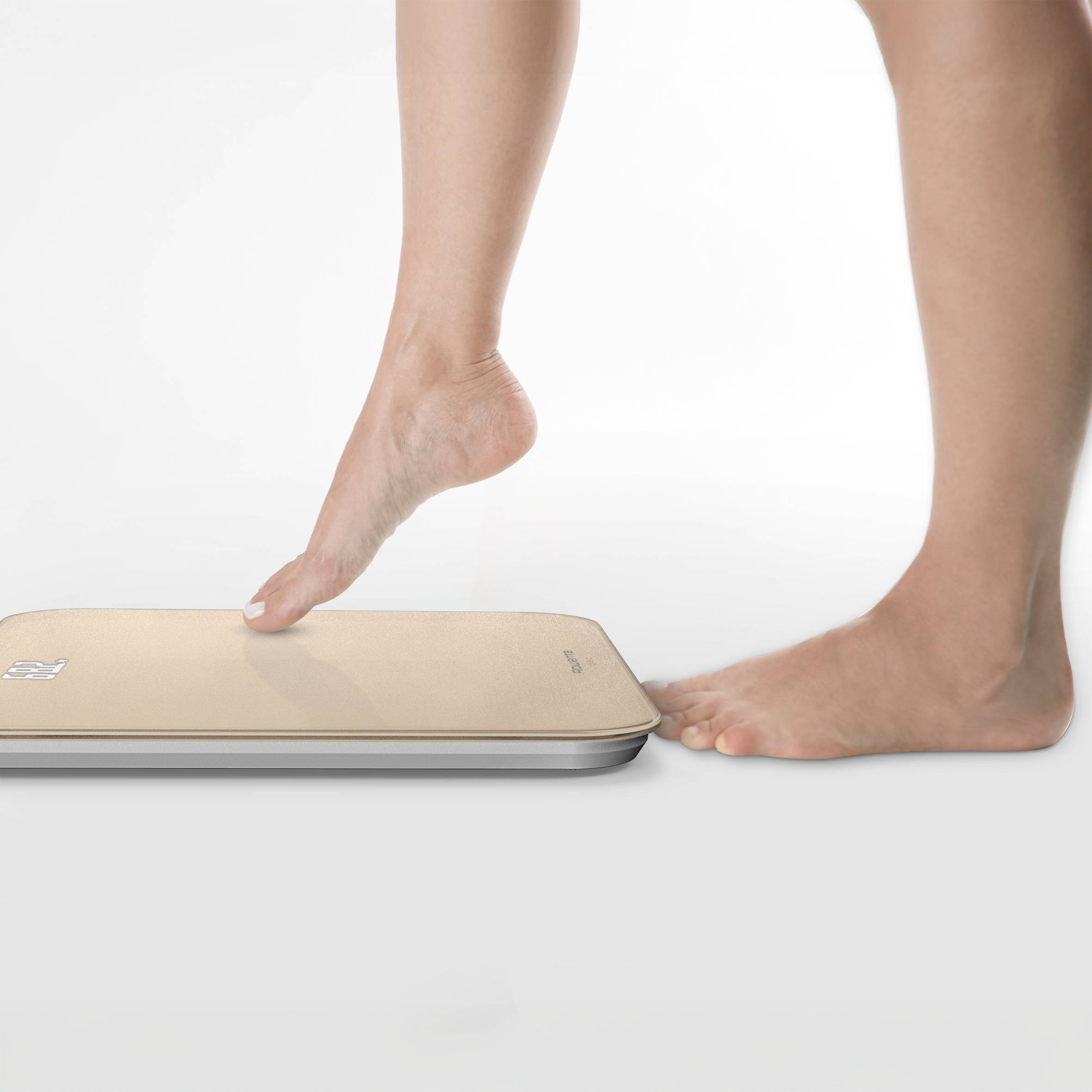 Ecrã invisível de fácil leitura com iluminação LED para uma utilização sempre confortável Balança de casa de banho com alta capacidade de até 180 kg e incrementos precisas de 100 g Plataforma de vidro com design fino (31 x 31 cm) medindo apenas 2,2 cm de altura — ideal para ser guardada discretamente quando não for utilizada Liga-se e desliga-se automaticamente a cada utilização e oferece a opção de medidas métricas (kg) ou imperiais (st, lb) Plataforma lisa em vidro temperado para fácil limpeza e higiene ideal Balança pronta a utilizar assim que sai da caixa, com três pilhas AAA incluídas Cores premium e um design moderno—incluindo cantos arredondados e um ecrã invisível