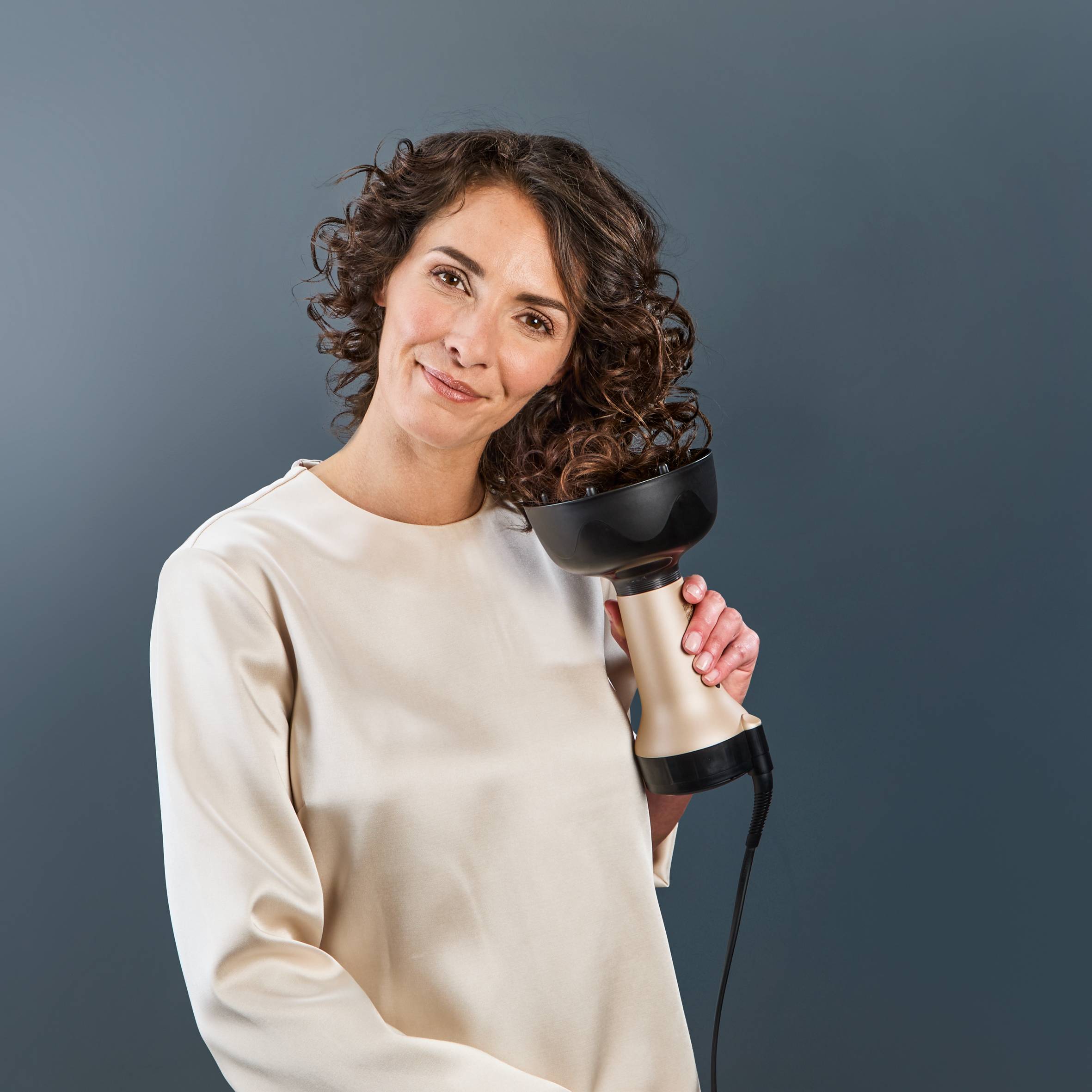 Em primeiro lugar, recomendamos a utilização de um pente para desembaraçar o cabelo após a lavagem e a aplicação da máscara ou creme de pentear. Utilize um protetor térmico, seque o excesso de água com uma toalha e aperte o cabelo de baixo para cima. Para secar grandes volumes utilize o difusor XL. Levante as raízes e elimine o frisado com o difusor de raízes. Suavize o cabelo crespo com o pente de dentes largos sobre o cabelo húmido. Obtenha caracóis naturais todos os dias!