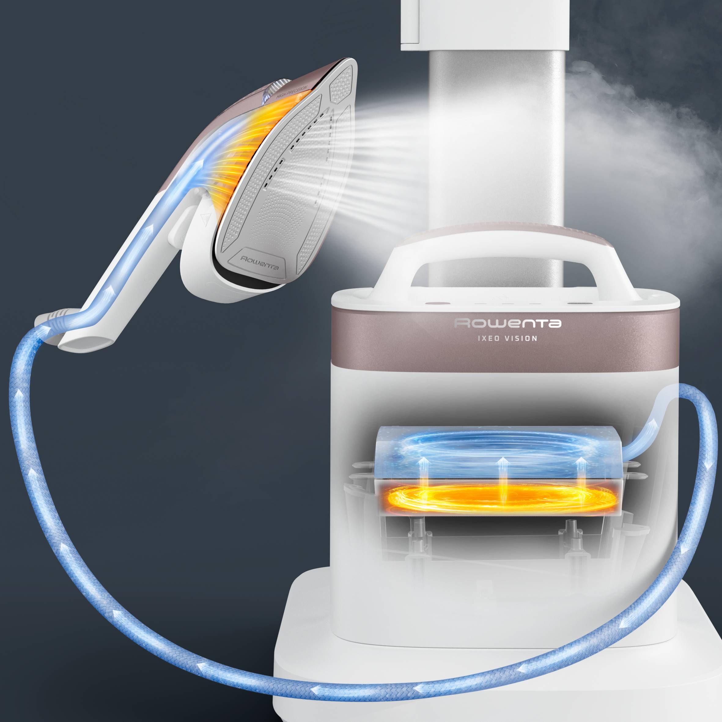 Descubra a fusão ideal entre escova a vapor e ferro de engomar com o IXEO Vision! Com o melhor dos dois mundos, este sistema de engomar versátil oferece vapor potente e manuseamento fácil. Cubra todas as suas necessidades de tratamento da roupa com a nova tábua multiposições e remova vincos com precisão e sem esforço graças ao vapor potente, design leve do ferro e tecnologia LED.