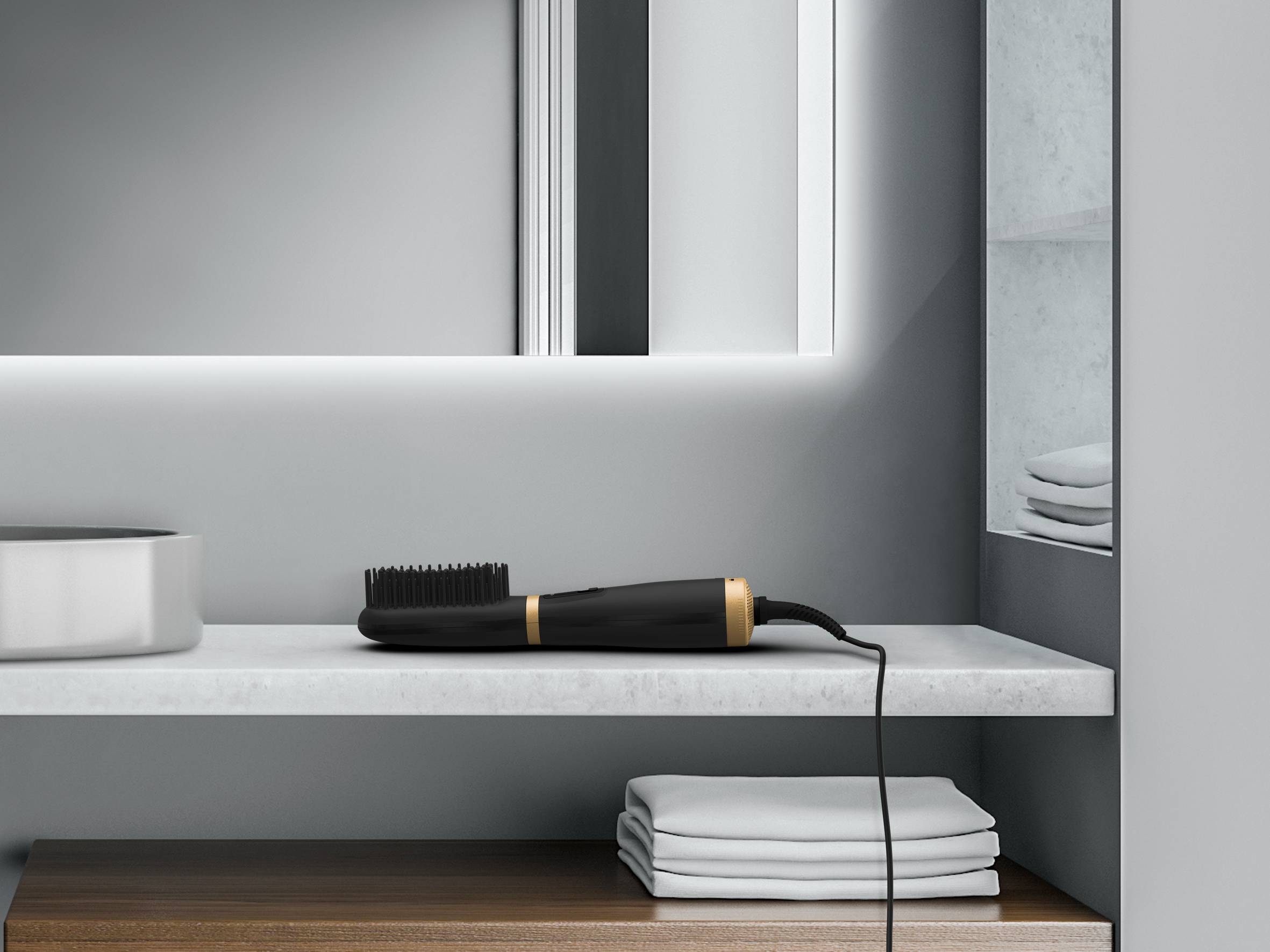 Uma escova de ar quente que funciona em cabelos secos e húmidos, para uma secagem e alisamento simultânea 2 em 1 Estilizar 2 em 1 com 3 regulações ajustáveis de temperatura/ar: cabelo molhado, cabelo ligeiramente húmido e retoques de penteado em cabelo seco Gerador iónico de redução da eletricidade estática e do frisado para um cabelo liso e maleável com um brilho radiante Escova de ar quente fácil de utilizar com um movimento de "escovar" intuitivo para um penteado deslumbrante extremamente fácil Deslizar perfeito com o nosso revestimento cerâmico exclusivo, para resultados suaves e brilhantes num instante Uma escova de ar quente compacta, com uma pega intuitiva e ergonómica, e um cabo de 360 graus para um esttilizar confortável