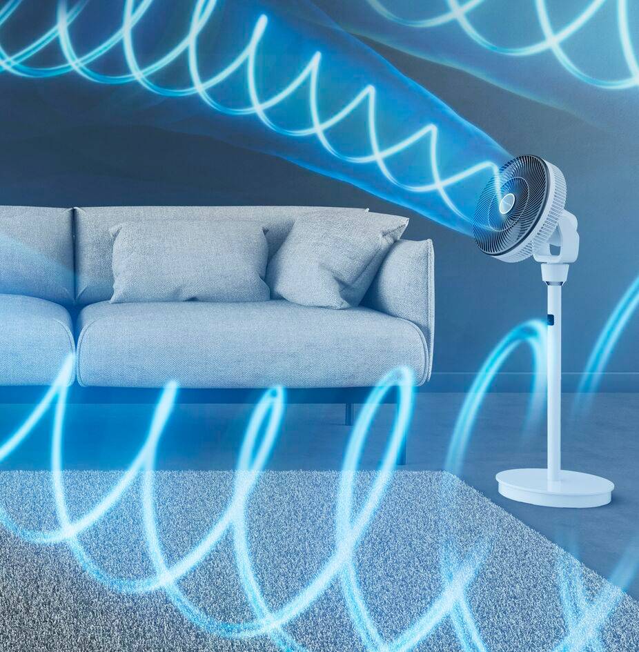 Aumente a circulação do ar em cada centímetro da sua divisão graças à oscilação multidirecional que se move tanto verticalmente como horizontalmente. Duas vezes mais superfície de arrefecimento com a oscilação multidirecional*. Combine a sua Turbo Swift Silence com o seu ar condicionado no Verão ou o seu aquecedor no Inverno para melhorar a eficiência e poupar energia! Uma solução ideal para reduzir o consumo dos seus outros aparelhos, aumentando a circulação de ar na divisão.